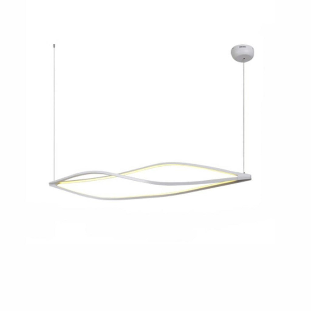 This pendant lamp features a crisp white finish and a sleek form crafted from aluminum and acrylic. Ideal for contemporary kitchens, dining areas, or offices, it provides soft, even illumination with a modern touch.